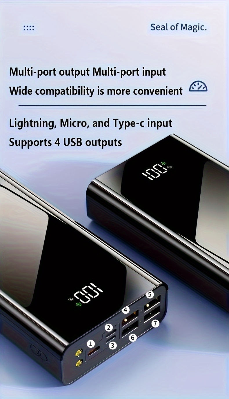 Powerbank 50000mAh, Szybkie Ładowanie i Latarka LED